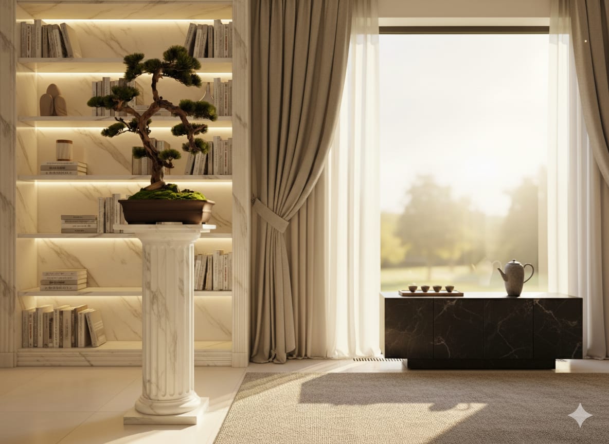 Jeder Astverlauf folgt einem ruhigen, spannungsfreien Rhythmus, der an traditionelle japanische Gartenästhetik erinnert.