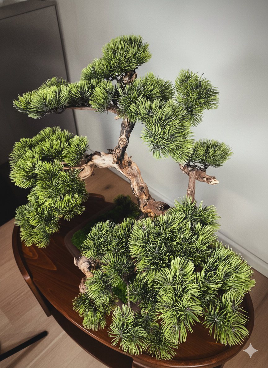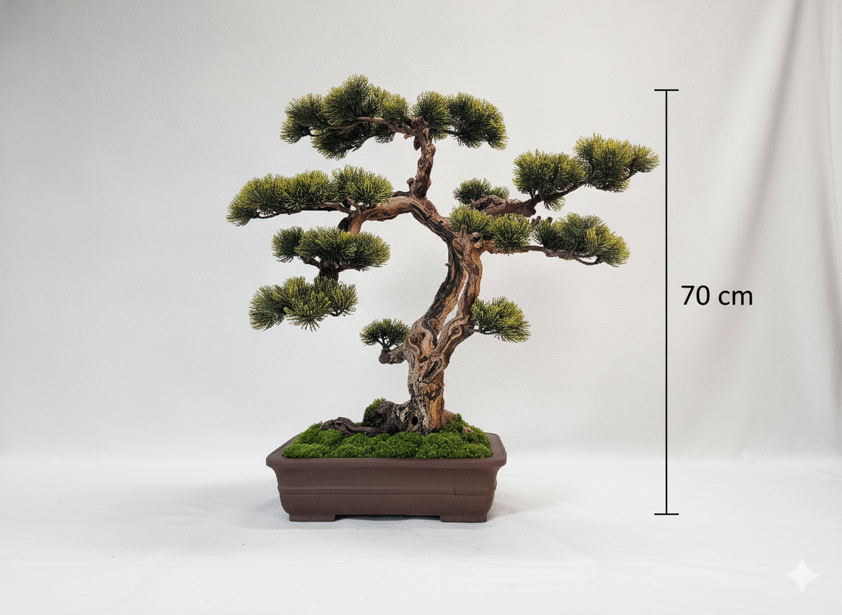 Design Bonsai 70 cm – Handgefertigter Kunst-Bonsai aus echtem Holz mit handbemalter Krone | Premium Interior Dekoration