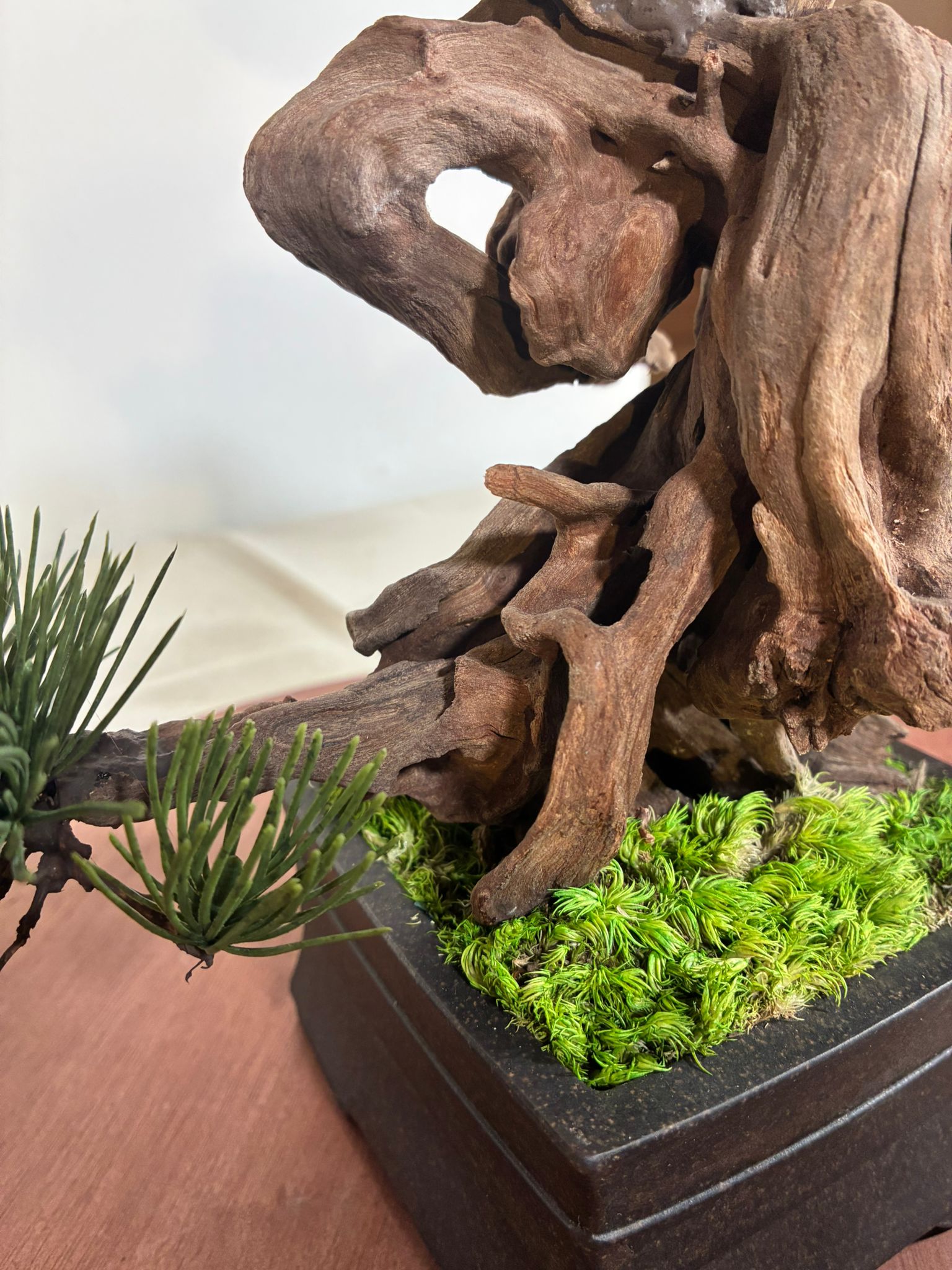 Dieser Semi-Artificial Bonsai ist ein handgefertigtes Designobjekt mit außergewöhnlicher Natürlichkeit