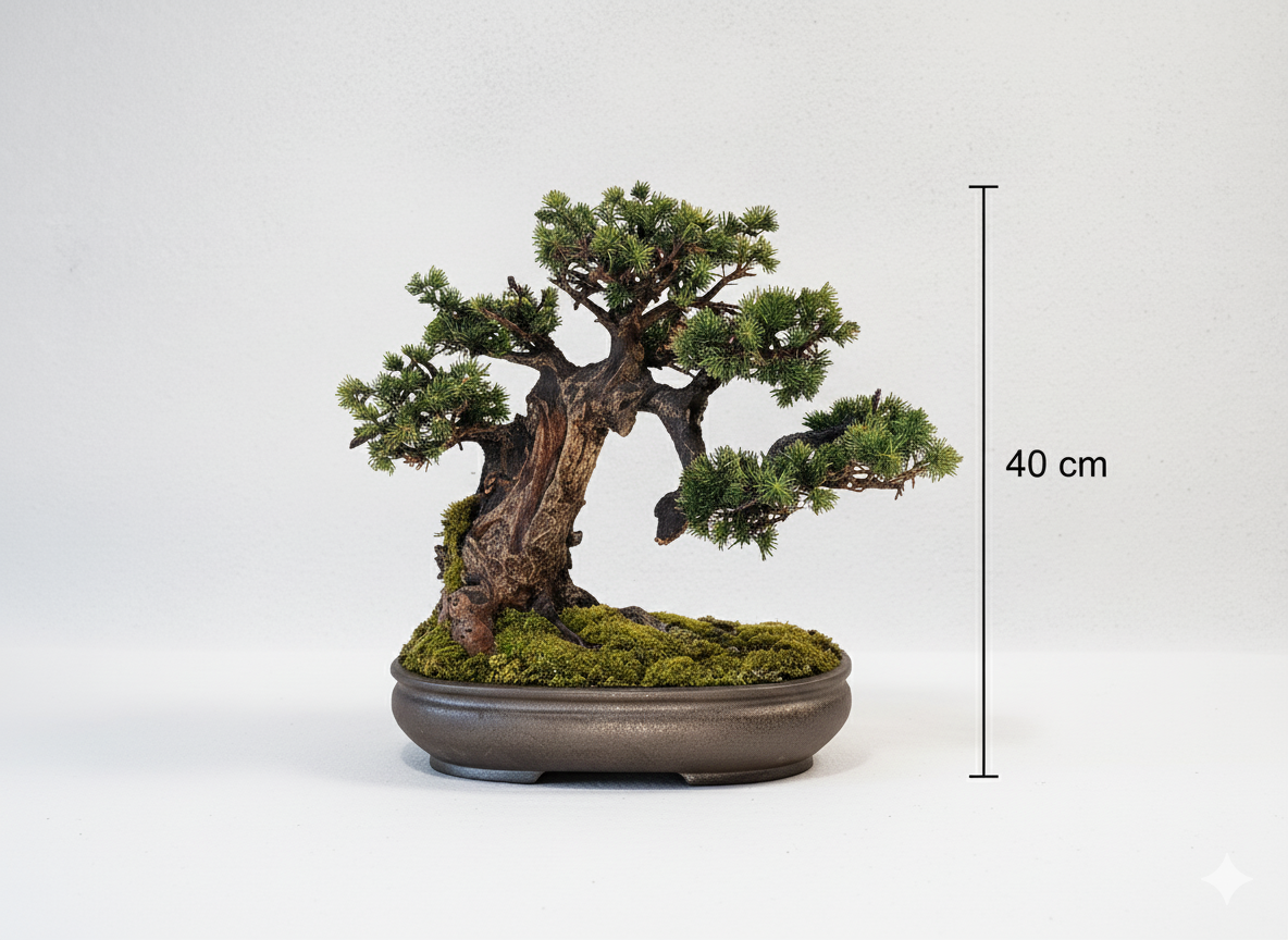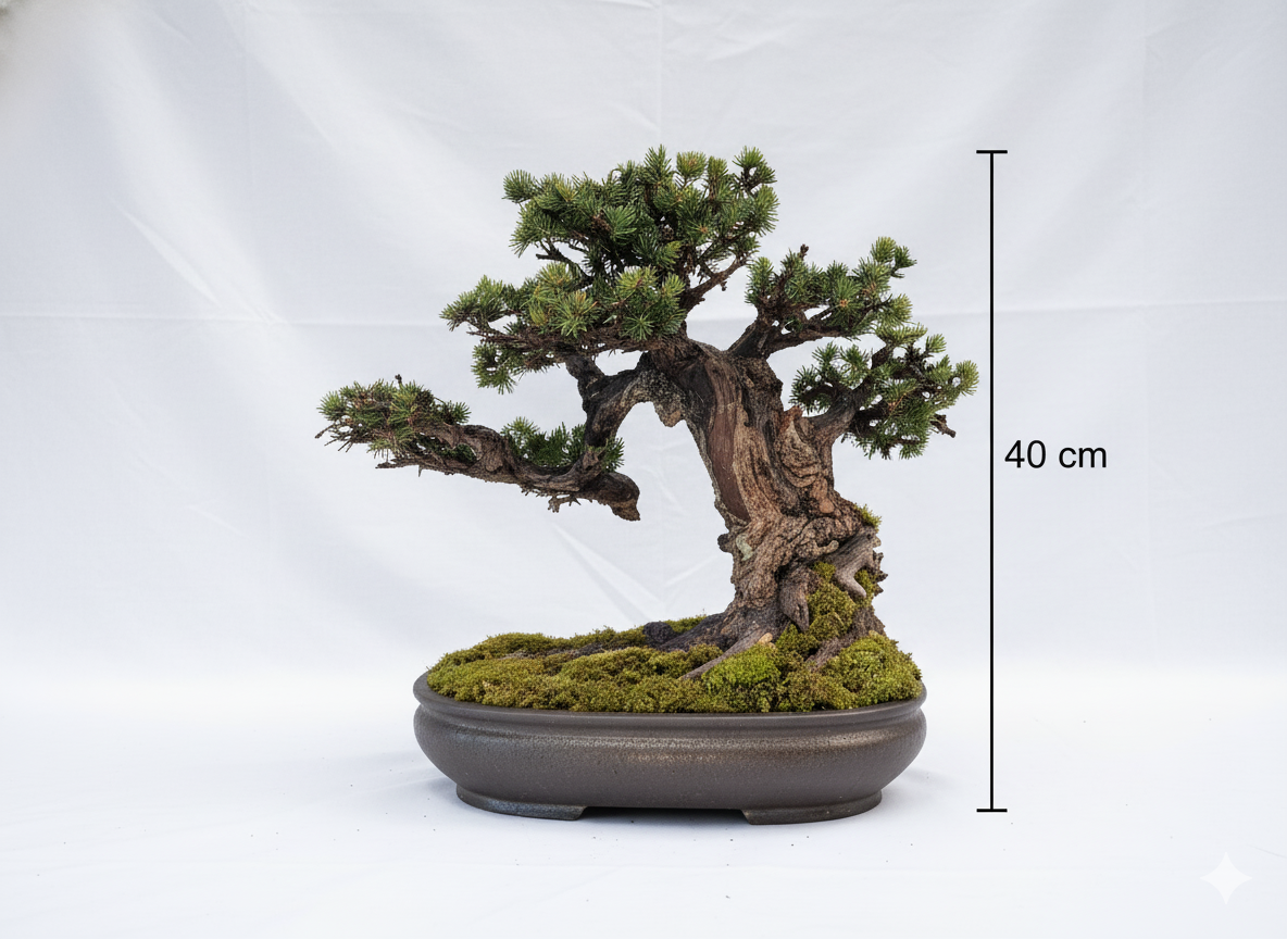Jeder angebotene Bonsai ist ein Unikat – Sie erhalten genau das Exemplar, das auf den Fotos zu sehen ist, kein nachgebautes Modell.