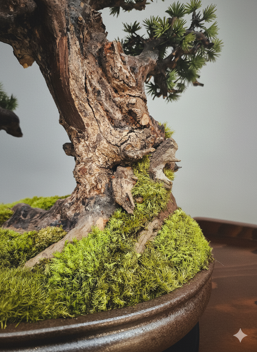 So entsteht eine natürliche Tiefe, die den Bonsai lebendig und zugleich in sich geschlossen wirken lässt.