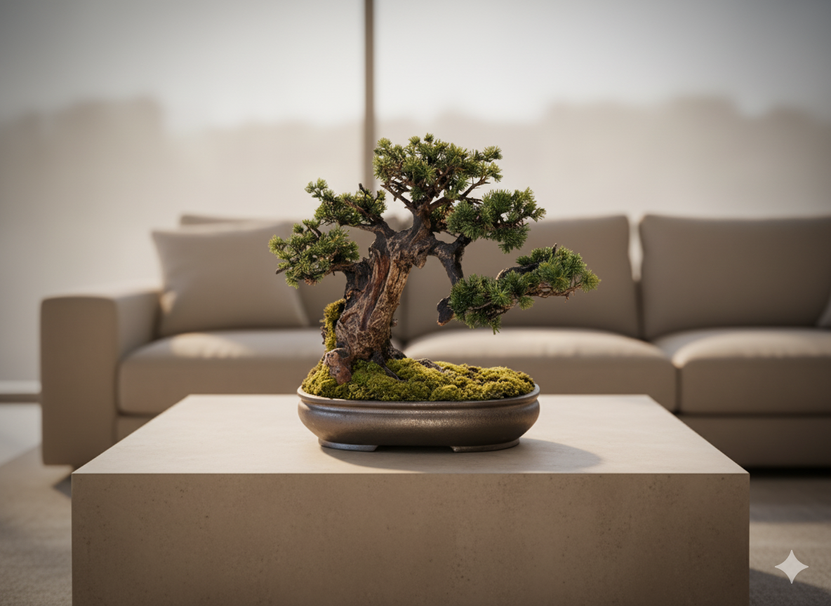 Dieser kompakte Design-Bonsai vereint handwerkliche Präzision mit stiller Ästhetik.