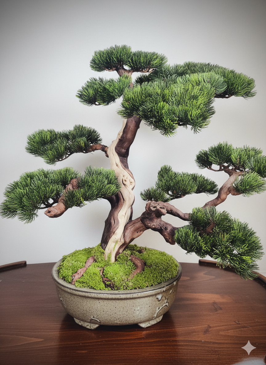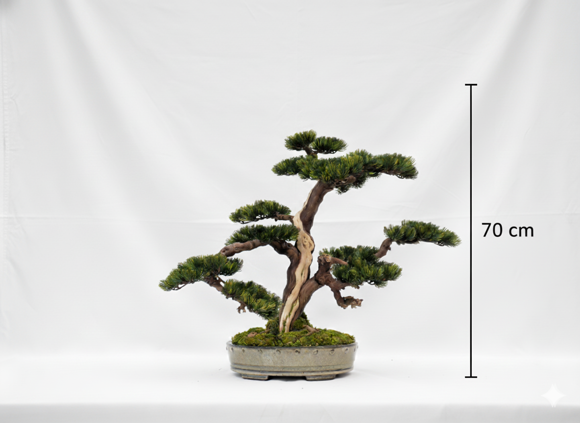 Jeder angebotene Bonsai ist ein Unikat – Sie erhalten genau das Exemplar, das auf den Fotos zu sehen ist, kein nachgebautes Modell.