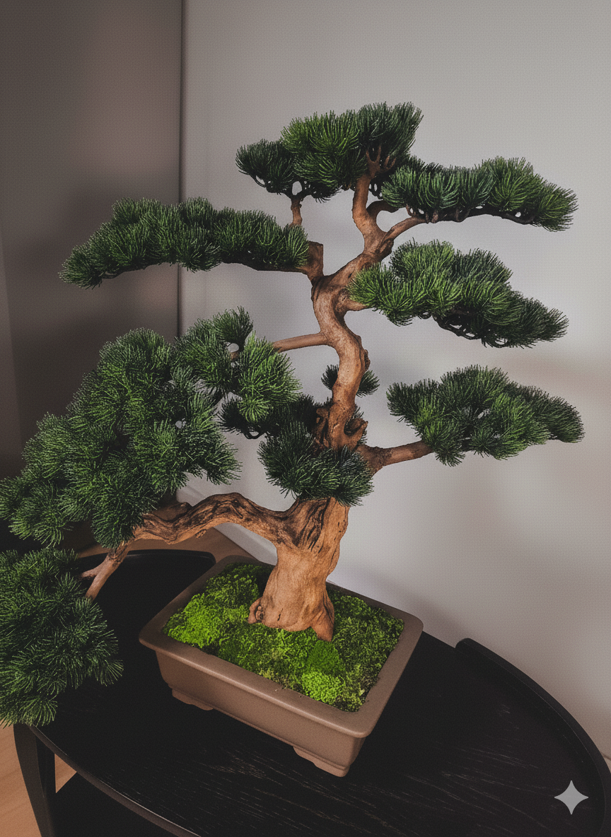 Design Bonsai 73 × 90 cm – Handgefertigter Kunst-Bonsai aus echtem Holz mit handbemalter Krone | Premium Interior Dekoration