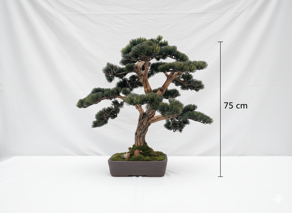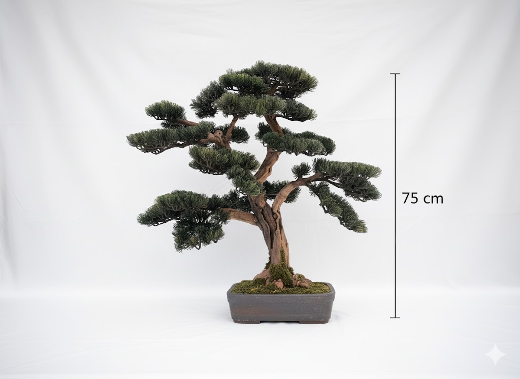 Jeder angebotene Bonsai ist ein Unikat – Sie erhalten genau das Exemplar, das auf den Fotos zu sehen ist, kein nachgebautes Modell.